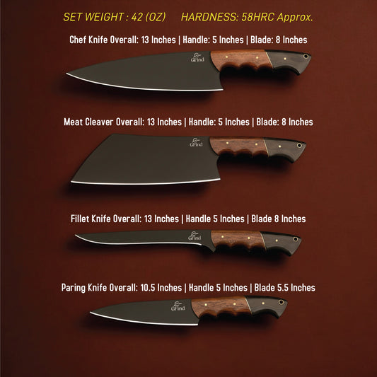 GFind Pro. Kitchen Chef Set | 12C27 Stainless Steel Blade with Powder Coating, Hand-Forged with Powder-Coated Finish