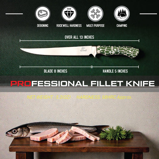 GFind Pro Fillet Knife Hand-Forged 12C27 Stainless Steel Blade | With Resin Handle