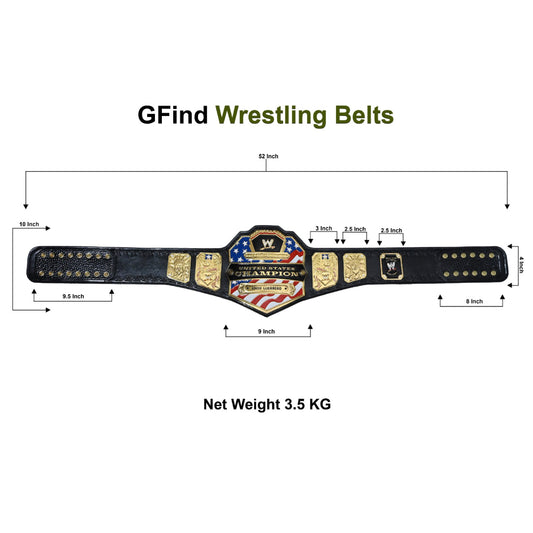 WORLD WRESTLING ENTERTAINMENT UNITED STATES CHAMPIONSHIP BELT – 4MM LEATHER & GOLD-PLATED (FREE SHIPPING+BAG)