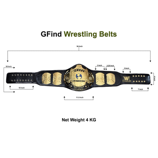 WWF WORLD WRESTLING FEDERATION CHAMPIONSHIP BELT – 4MM LEATHER & GOLD-PLATED (FREE SHIPPING+BAG)