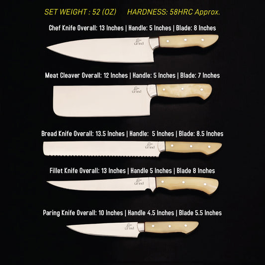 GFind Pro. Kitchen Chef Set | 12C27 Stainless Steel, Hand-Forged with Camel Bone Handles