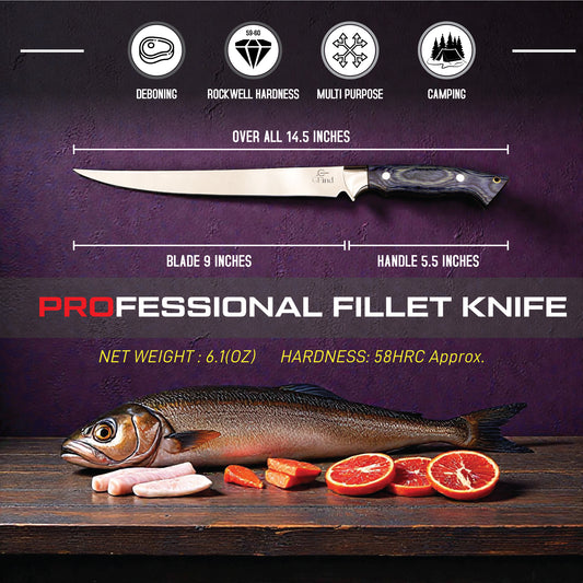 GFind Fillet & Boning 9" Stainless Steel Blade, Pakka Wood Handle