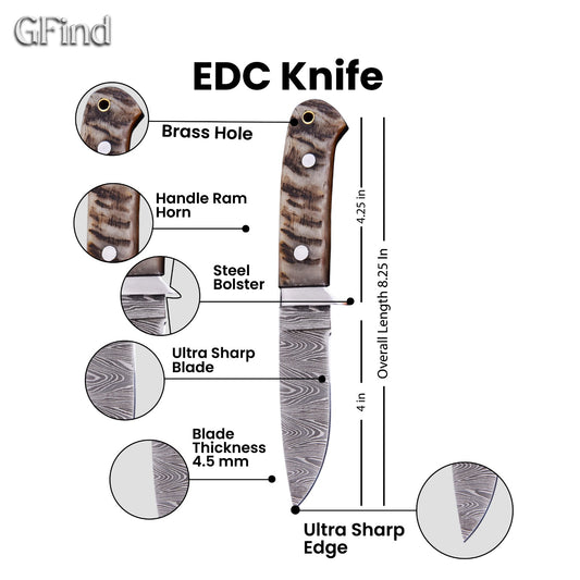 Hunting Knife with Ram Horn Handle | GFind Outdoor Blade