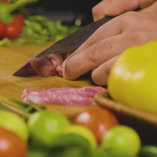 - 🔪 HIGH-CARBON STAINLESS STEEL - Immerse yourself in the robust and resilient design of our japanese knife, Formed with high-carbon stainless steel, the blade sings with durability and longevity, holding its magnificent edge through the most demanding culinary compositions,