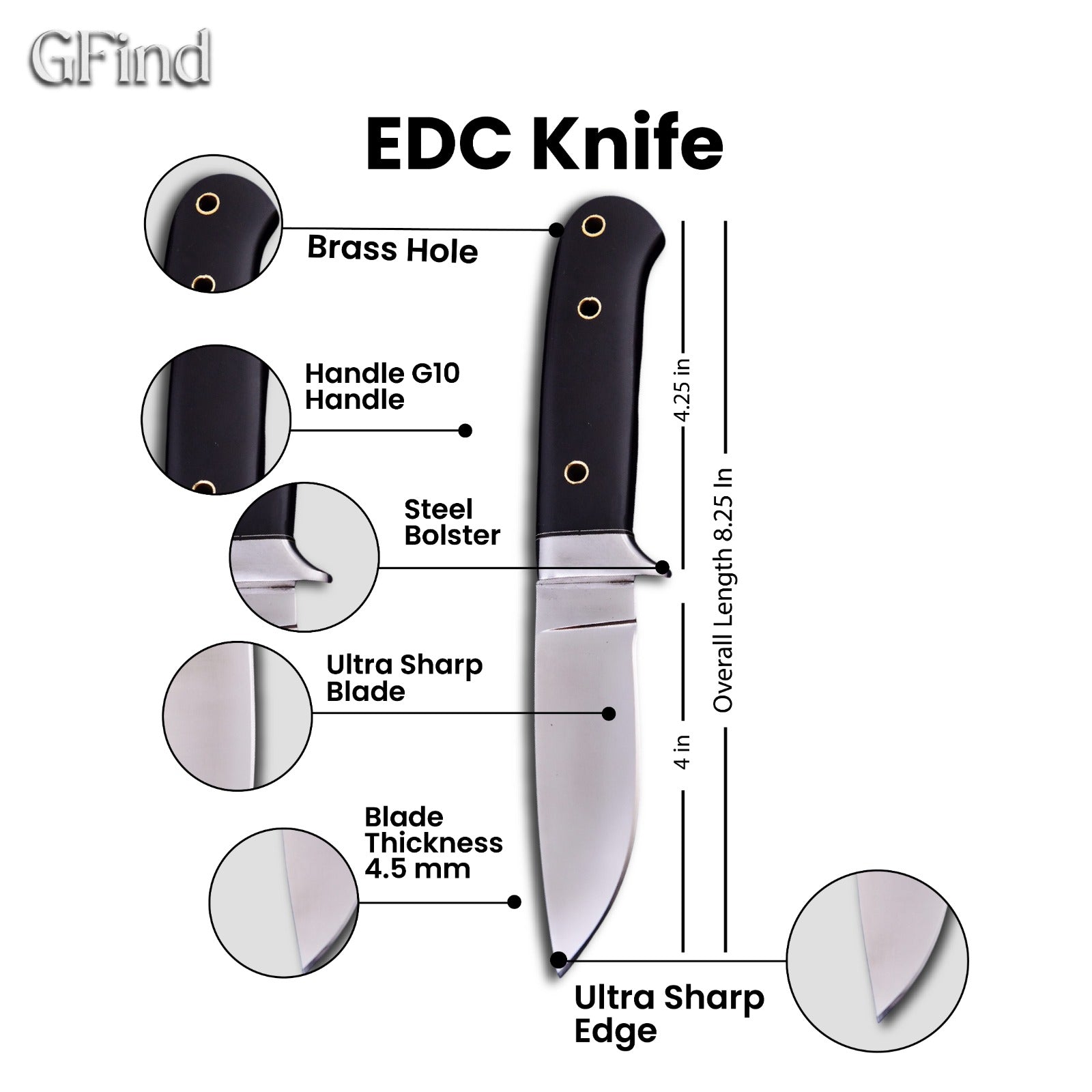 Engineered for reliability and built to endure, the EDC Hunting Knife with Black G10 Handle by GFind is a high-performance tool designed for tactical use, outdoor survival, and everyday tasks. Its razor-sharp Damascus steel blade paired with a durable G10 handle ensures unmatched control, grip, and strength in any environment. Lightweight yet tough, this knife is made for those who demand precision and resilience in the field.