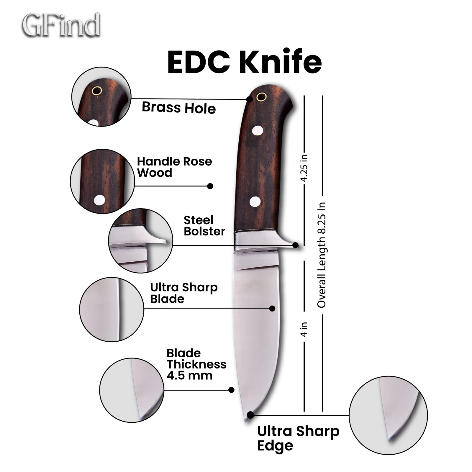 The EDC Hunting Knife with Rosewood Handle from GFind is designed for those who value everyday utility with rugged outdoor performance. Combining a sharp, durable Damascus steel blade with a smooth, ergonomic rosewood handle, this knife offers precision and control in every cut. Whether you’re camping, hiking, hunting, or need a reliable everyday carry, this blade is built to handle it all. The elegant rosewood adds a touch of class, while its compact form makes it easy to carry on any adventure.