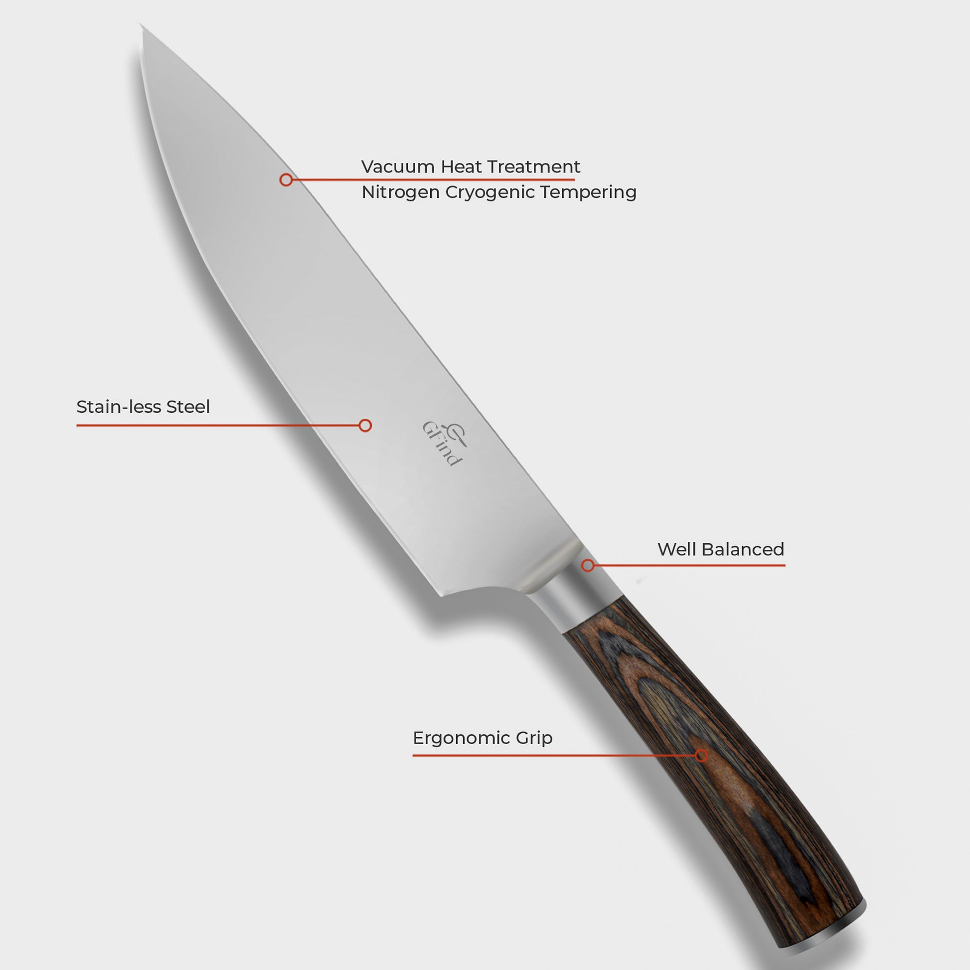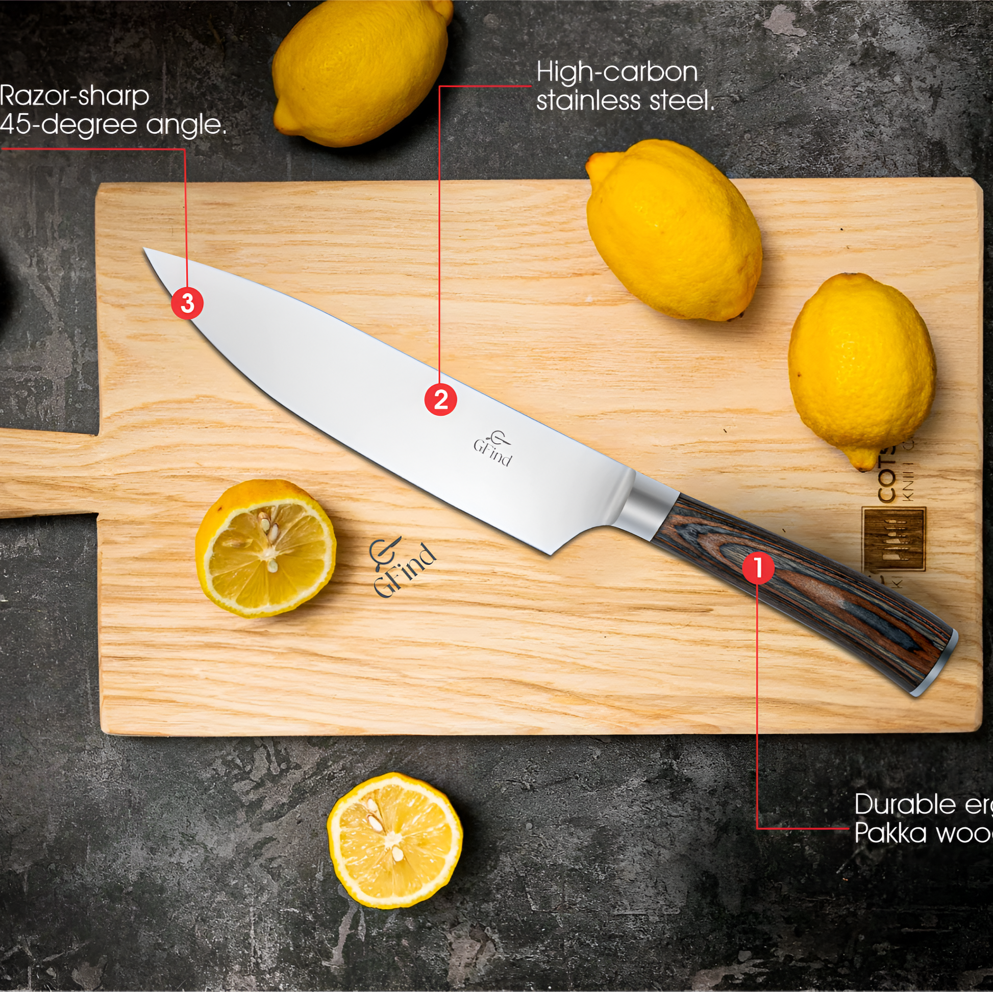 GFind Professional 8" Stainless Steel Blade Chef Knife, Pakka Wood Handle